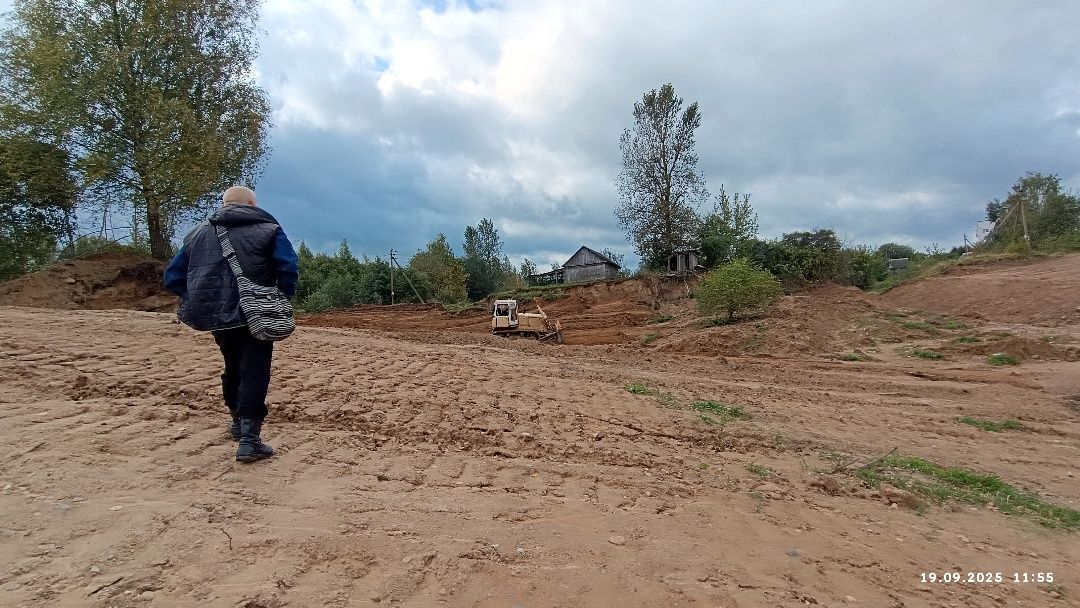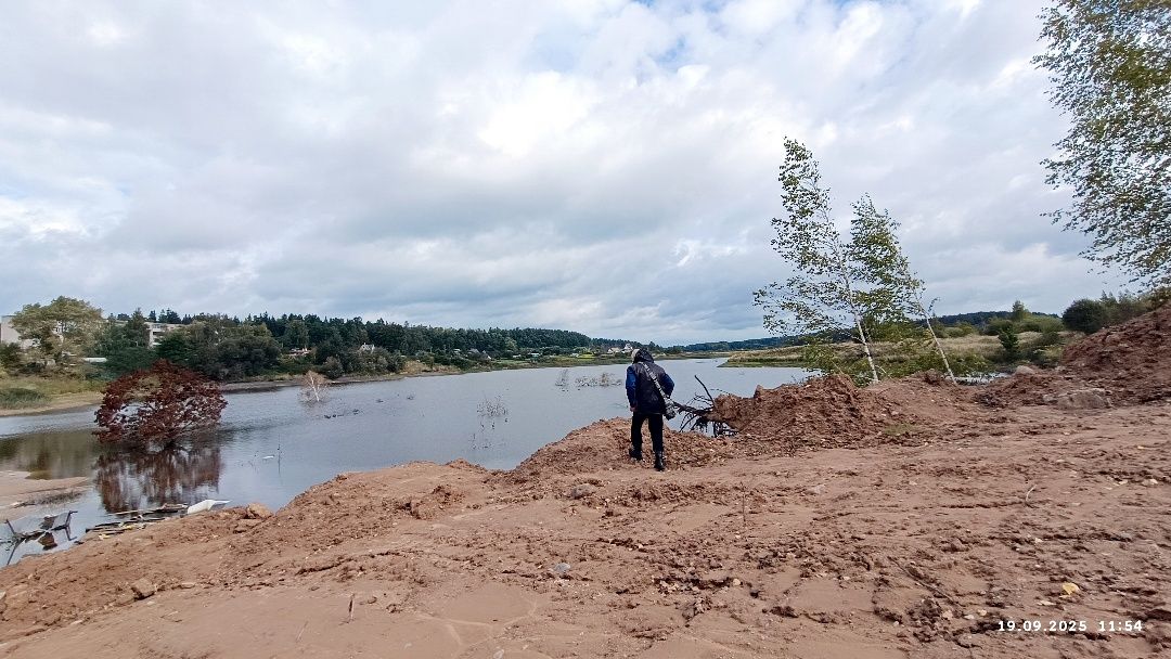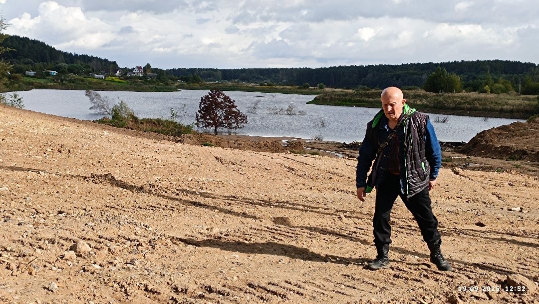 Разворачиваюсь на 180 градусов и наблюдаю, как немного вдали от берега, как раз между этим и значительно меньшим вторым карьером бульдозер старательно разглаживает засохшую глину.