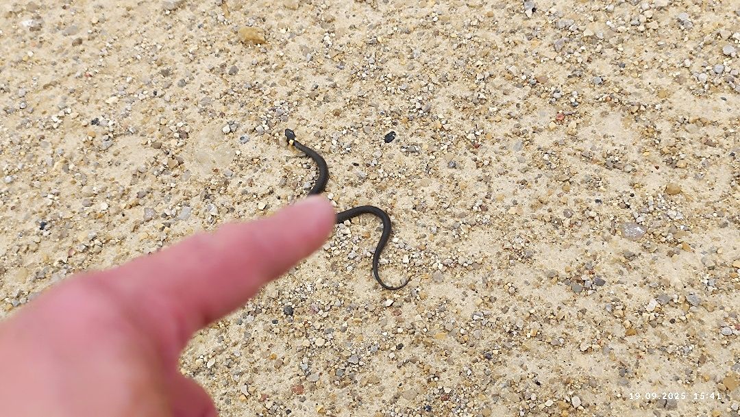 В инете читал, что гравийка в карьер предназначена исключительно для движения карьерных самосвалов «БелАЗов», но пока ни одного увидеть не довелось. Спецтрасса широка и извилиста. Из посторонних объектов на ней довелось увидеть лишь маленького ужа.