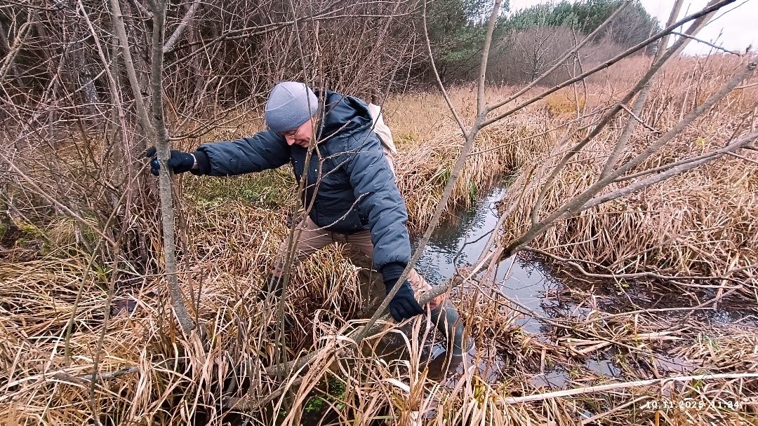 Прибрежная тропа сквозь тростник ведёт к водному урезу – лодки по ней затаскивают. Надо как-то пробираться на тот берег приточного ручья, а там видно будет. В сосняк удобнее всего заходить с места парковки драндулетов и следовать параллельно вытянутой озёрной губе, образованной водотоком.
