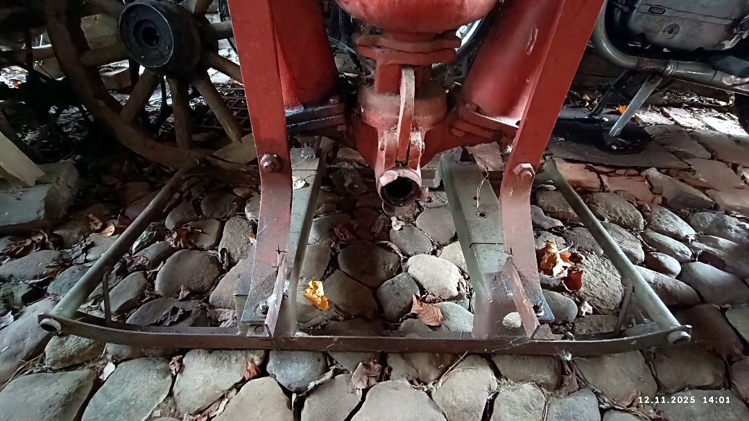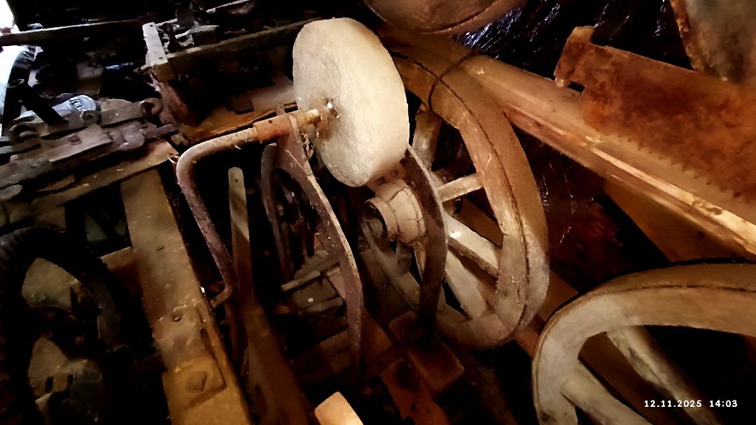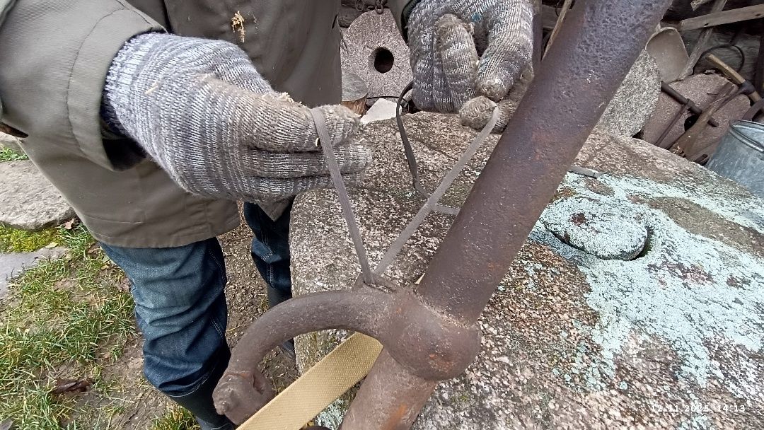 - Вряд ли, - отвечаю. – Нет смысла напрягать человеческие организмы, если давно изобрели работающие на бензине водяные насосы производительнее, полегче и компактнее их предков. Скорее всего «старички» пошли в металлолом. А вот их опоры рычага люди приспособили для поддержки иных устройств. Вот экспонат подобного рода: кто-то применил основание водяной помпы для создания примитивного станка, называемого точилом.