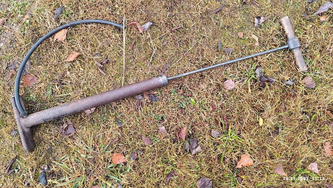 Пробовал искать происхождение экспоната. Никаких штампов производителя он не имеет. С помощью интернета установил, что во время войны такими насосами оккупанты перекачивали керосин. Походный вариант, поскольку имеет отверстие под заплечный ремень.