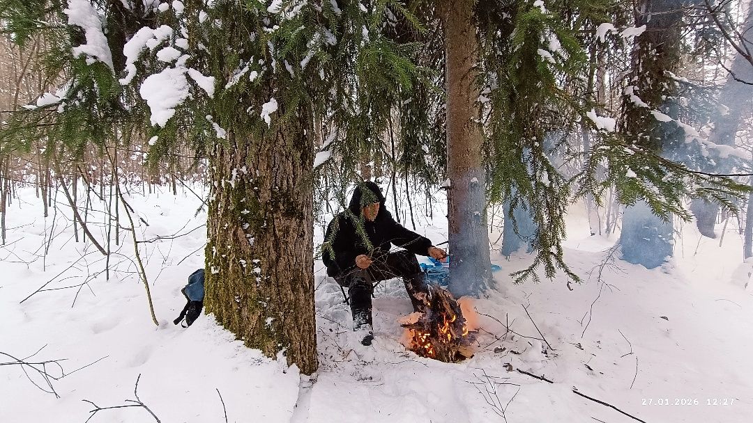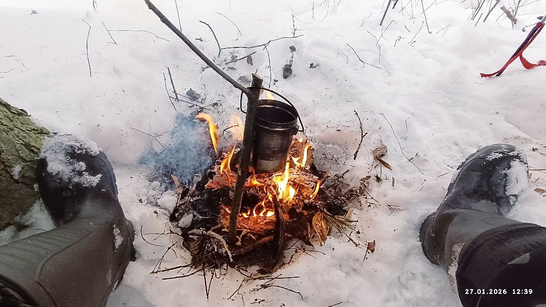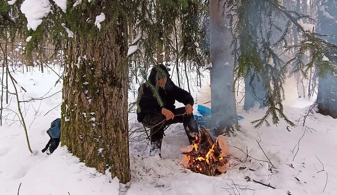 И рядом топливо для костра из снега торчит, замаскировавшись под корч.