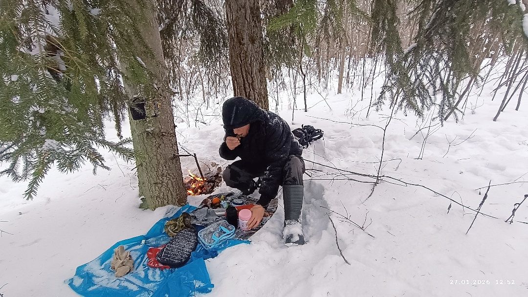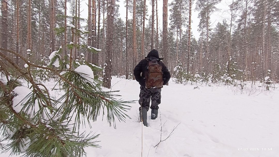 Блукач согласился, поскольку ещё никогда не оказывался неправ его внутренний советчик. Вскарабкался обратно наверх берегового склона, нашёл три удобных для трапезы огромных сосны, под которыми снегу было мало, но вот беда – с озера ветер одежду продувает. Лучше будет пройти недавними следами вглубь леса и там оборудовать лесную забегаловку «Пень-колода».