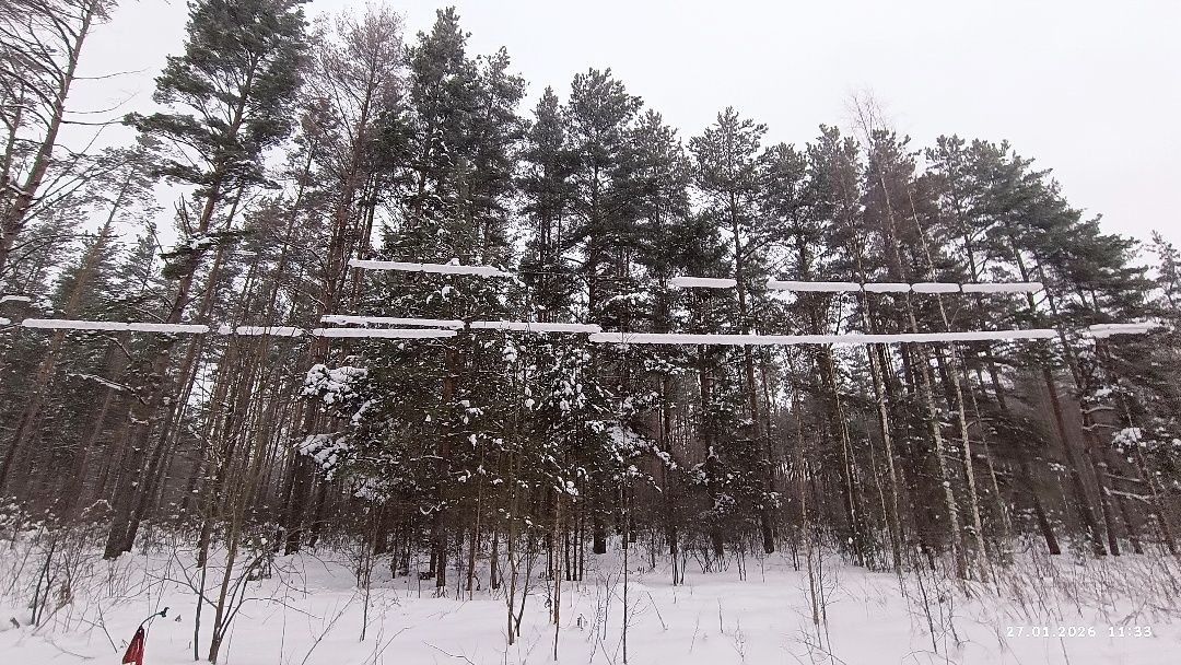 Используя штатив в качестве щупа, осторожно перебрался через окоп. Вышел на знакомую лесную дорогу. Она не использовалась с начала образования снежного покрова. Со стороны Боровенки над дорогой протянулись провода двух ЛЭП. Большая линия выглядела нормально. Меньшая же несколько озадачила. Её провода окаймлял снежный покров, казавшийся трубами изоляции.
