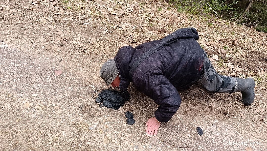 – Клянусь, не мог я её не заметить, значит, мишка постарался оправиться в течение часа между нашими заездами. А проезжающие машины объезжают чёрную массу, боясь её содержимым испачкать днище автомобилей. Согласно интернетсведениям, такого цвета говно желудки косолапых вырабатывают по весне в результате питания растительной пищей. Оно и пахнуть должно травой.