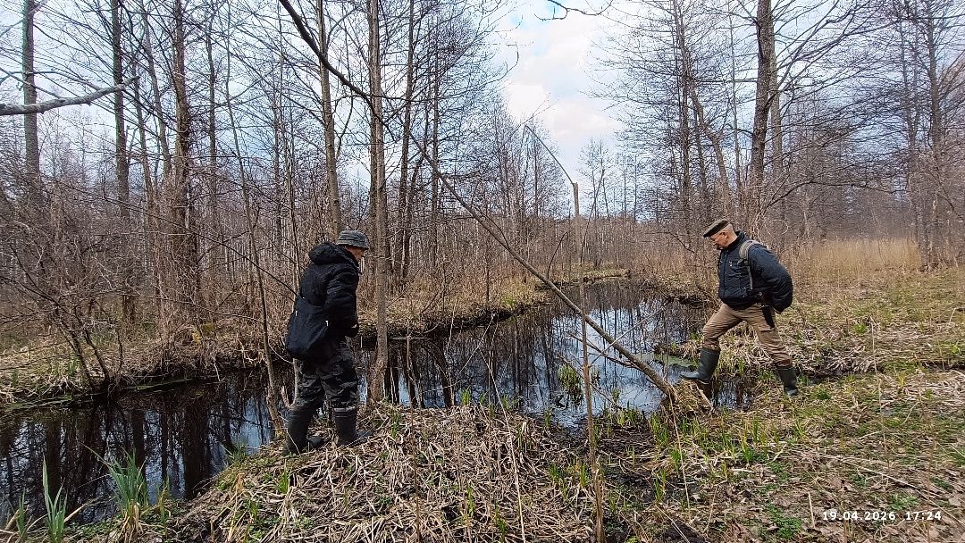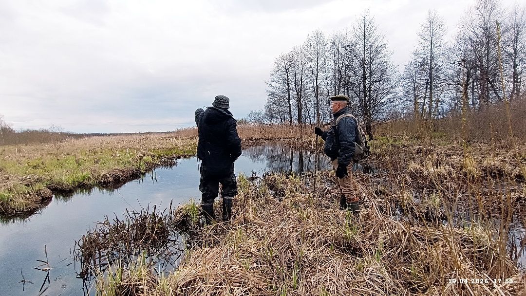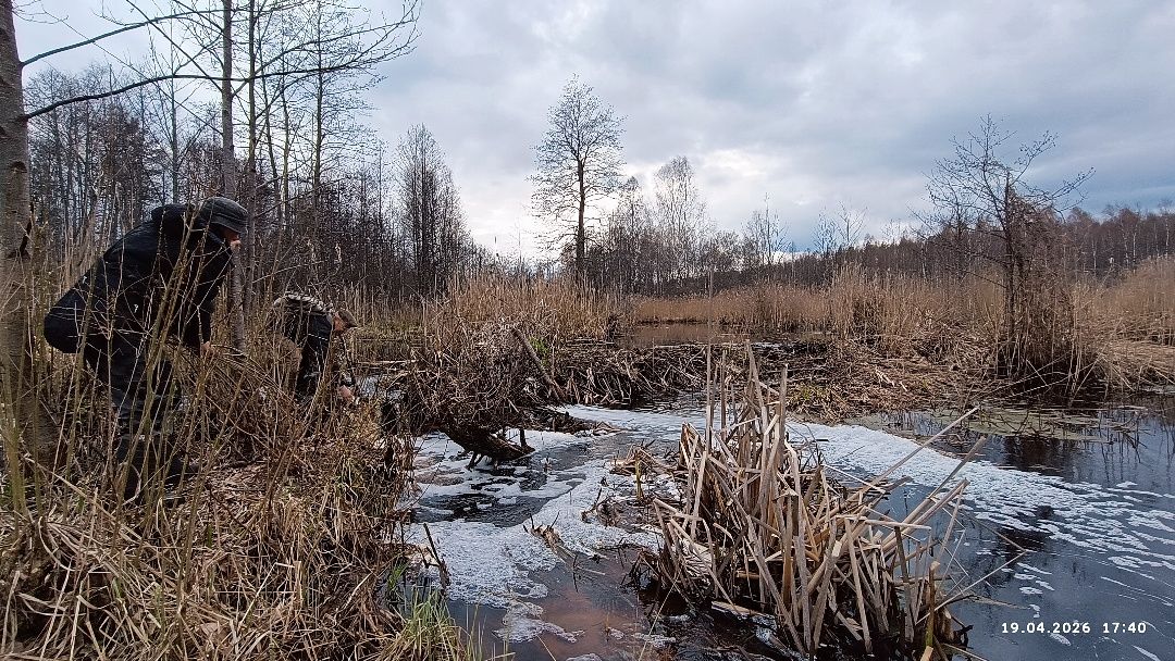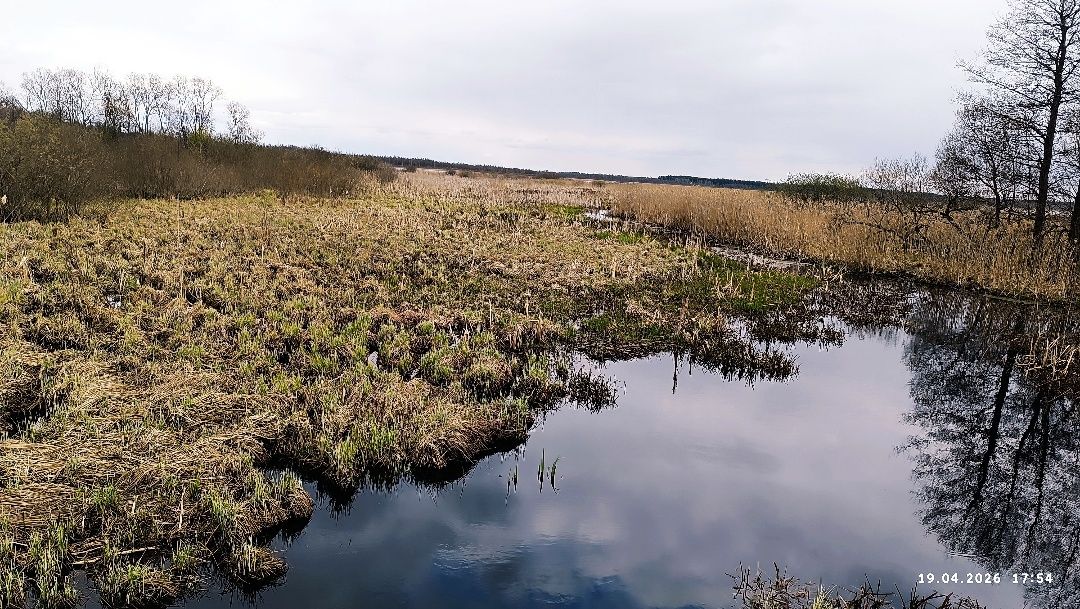 Нет. Это всего-то лесовозы размолотили болото так, что оно превратилось в огромную лужу. А за ней и дамба тянется вдоль русла, извивающегося по древнему прямому фарватеру канала.
