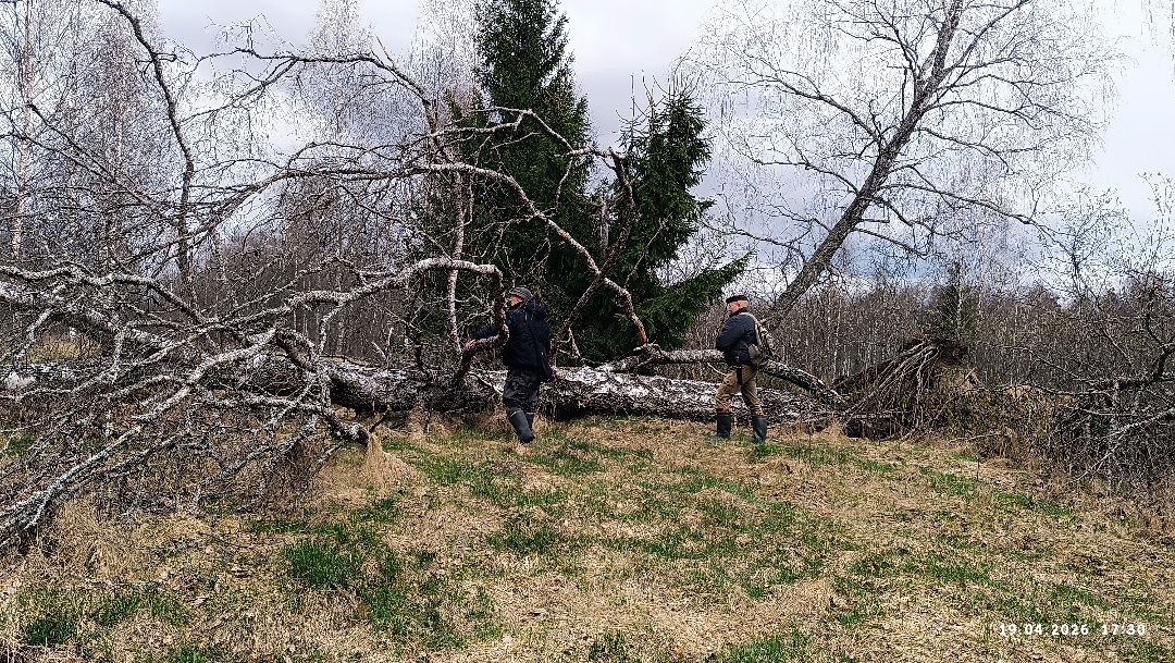 Объехавшую и почти сравнявшуюся с окружающей почвой дамбу перегородила упавшая большая берёза. Раньше такими были обсажены все дамбы каналов Березинской водной системы для укрепления искусственных земляных сооружений. Местное население называло гигантские деревья «катерининскими», не зная, что Систему строил царь Павел уже после смерти матери Екатерины.