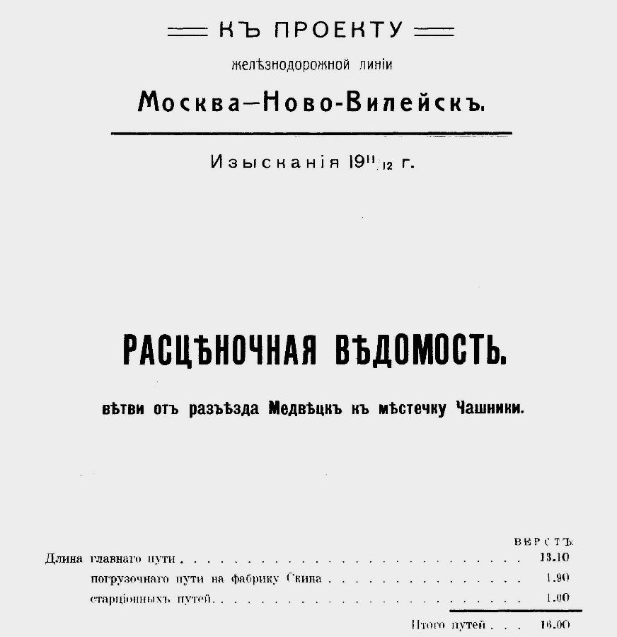 В 1911 году Советом министров России был представлен проект железной дороги Москва – Вильно. С.Б.Жихарев разъясняет идею этого строительства так: