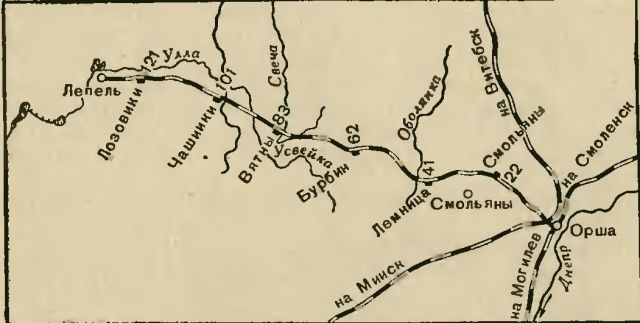Однако линия от Динабурга прошла севернее Лепеля: через Полоцк (1866) до Витебска (1866), а далее до Орла (1868), в конце XIX века образовав Риго-Орловскую железную дорогу.